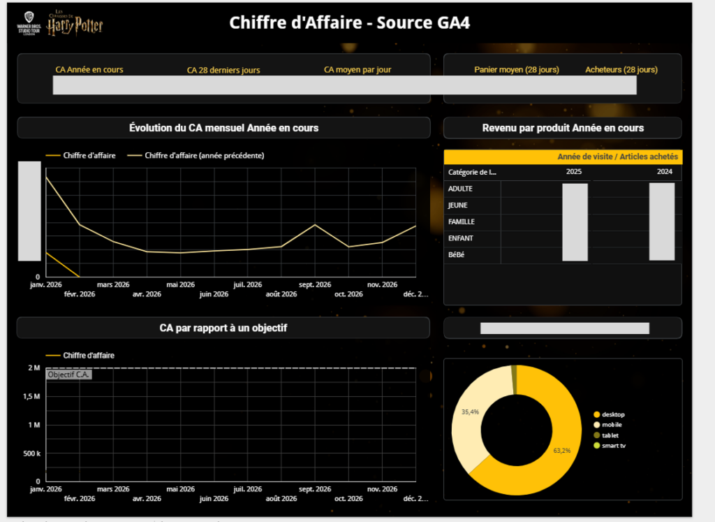 - Standardisation des KPI : Suivi en temps réel du CA (mensuel, quotidien), du panier moyen et du revenu spécifique par type de produit ou de device.