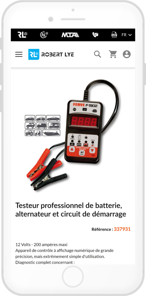 Robert Lye est un acteur incontournable dans la fabrication et la distribution de pièces de connexion électrique et de signalisation pour une large gamme de véhicules (légers, utilitaires, agricoles, nautiques, travaux publics et poids lourds). Avec un catalogue B2B de 10 000 références, le site e-commerce représente une part majeure de son chiffre d’affaires (environ 50%).